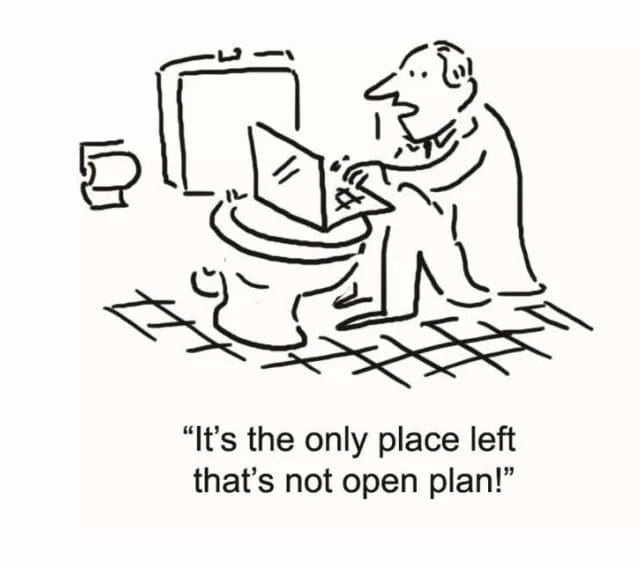 Open offices are totally unfit for the brain because they make concentration, attention and thinking very stressful, most often unnecessarily exhausting, if not impossible.
